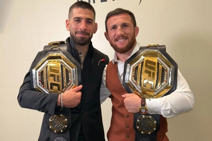 Yüngül çəkidə hazırkı UFC çempionu, qarışıq döyüş növləri üzrə gürcü əsilli İspaniya idmançısı İliya Topuriya bildirib ki, ikinci titul qazanmağa çalışmaq üçün həmyerlisi Merab Dvalişviliyə çəki dərəcəsində yüksəlməyi məsləhət görüb.