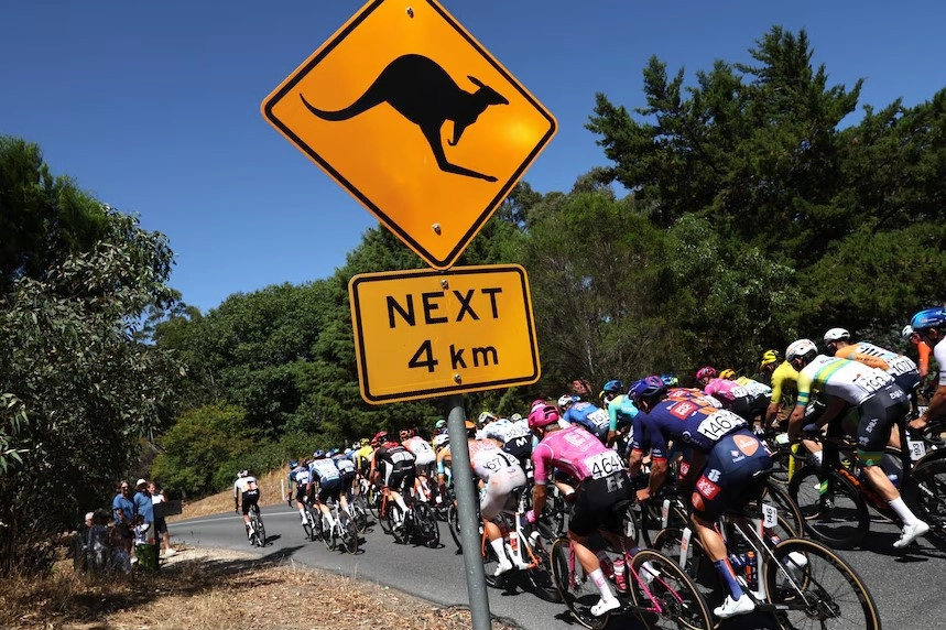 İdman.Biz xəbər verir ki, yarışın gedişində bir kenquru qəfil yola çıxaraq velosipedçilərin qarşısını kəsib. Heyvanın yoldan keçdiyi anda peloton (yarış zamanı velosipedçilərin əsas, sıx hərəkət edən qrupu) sürətlə hərəkətdə olub. İdmançılardan biri toqquşmadan yayına bilməyib və həm velosipedçi, həm də kenquru yerə yıxılıb. Digər iştirakçılar isə vaxtında əyləci sıxaraq Avstraliyanın "qanuni sakini"nə yol veriblər.