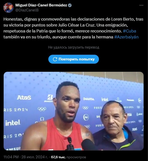 Kuba prezidenti Migel Dias-Kanel Bermudes Azərbaycan boksçusu Alfonso Dominqesin Paris-2024 Yay Olimpiya Oyunlarında ilk qələbəsindən sonra verdiyi müsahibəyə münasibət bildirib.