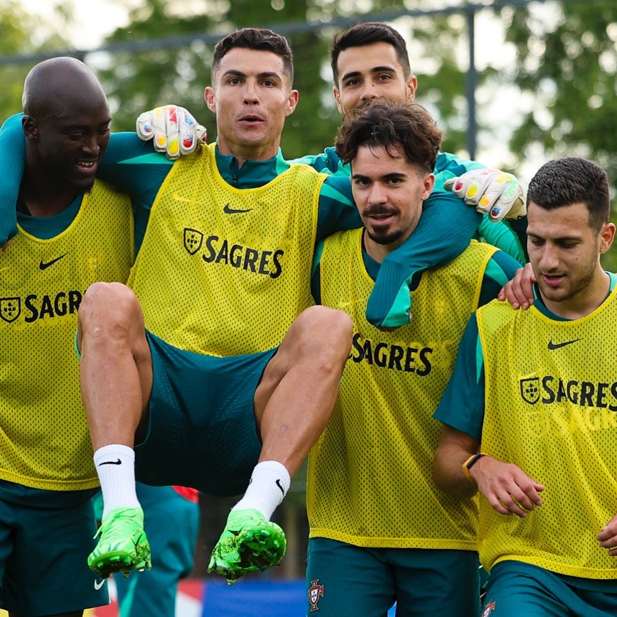 Fotoda Portuqaliya millisinin oyunçuları Ronaldonu çiyinlərinə qaldırıblar. Adətən qalib komandalar liderlərini çiyinlərini daşıyır ki, Kriştiano iddialı rəqiblərinə meydan oxuyub.