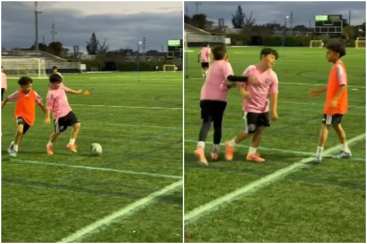 Lionel Messi's 10-year-old son, Thiago Messi, is already showing in training that he is following in his father's footsteps.