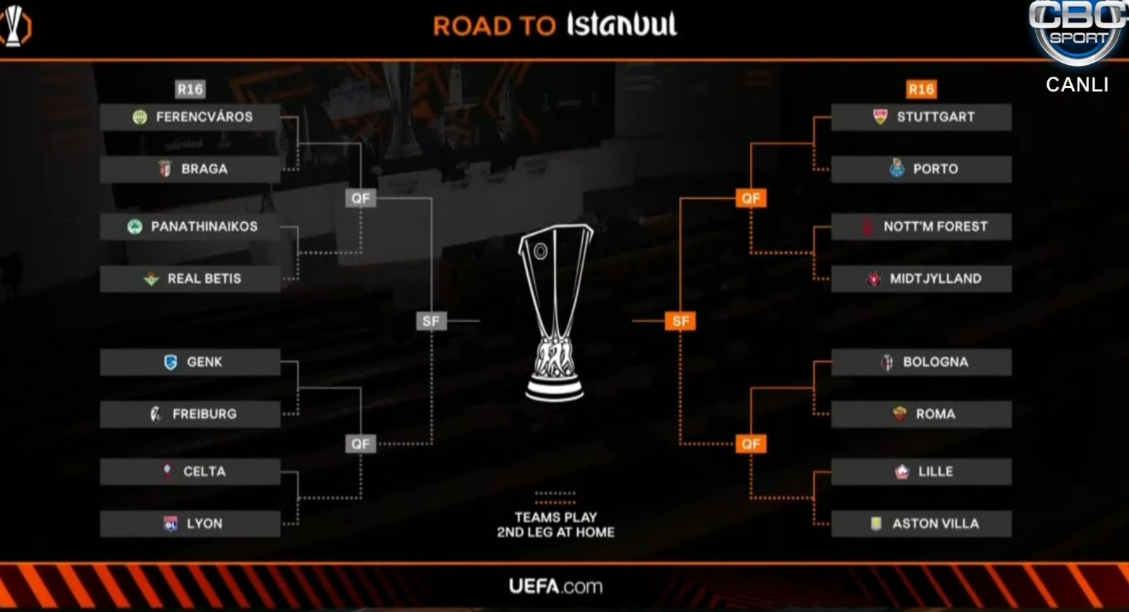 Liqa mərhələsinin ilk "8-liy"i: "Lion" (Fransa), "Aston Villa" (İngiltərə), "Midtyullann" (Danimarka), "Betis" (İspaniya), "Portu", "Braqa" (hər ikisi Portuqaliya), "Frayburq" (Almaniya), "Roma" (İtaliya).
