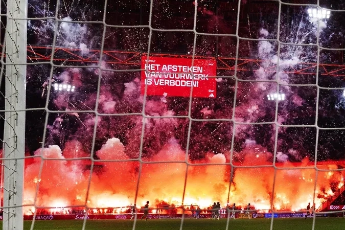 Erediviziyanın 14-cü turunun "Ayaks" və "Qroningen" komandaları arasında keçirilən oyun Amsterdam komandasının azarkeşlərinin tribunalarda pirotexnikadan istifadə etməsi səbəbindən yarımçıq dayandırılıb. Sport24.az xəbər verir ki, oyun cəmi beş dəqiqə davam edib.