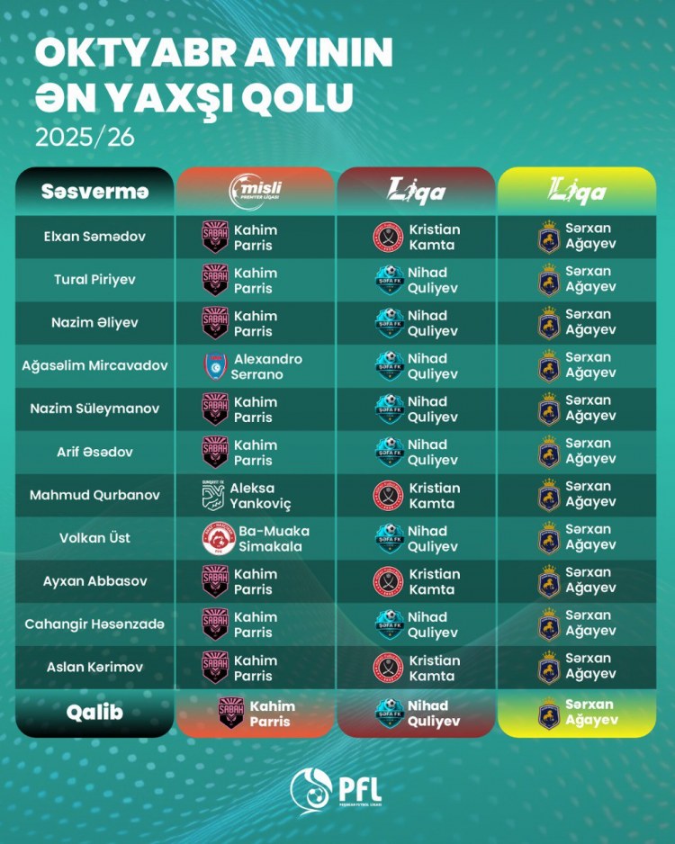 Münsiflər heyətinin səsinə əsasən, Misli Premyer Liqasında Kahim Parris, I Liqada Nihad Quliyev və II Liqada Sərxan Ağayev birinci olub.