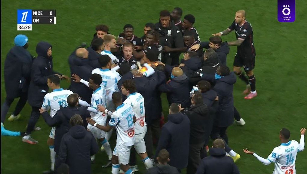 Fransa çempionatının 13-cü turunda keçirilən oyunun ilk hissəsinin ortalarında "Nitsa" və "Marsel" komandalarının oyunçuları arasında kütləvi dava baş verib.