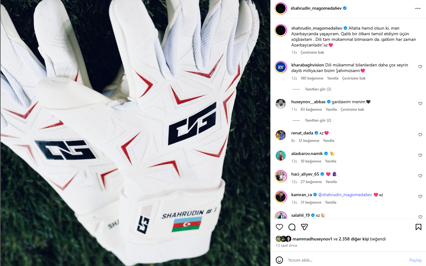 Azərbaycan millisinin və "Qarabağ"ın qapıçısı Şahruddin Məhəmmədəliyev şəxsi "Instagram" hesabında paylaşım edib.
