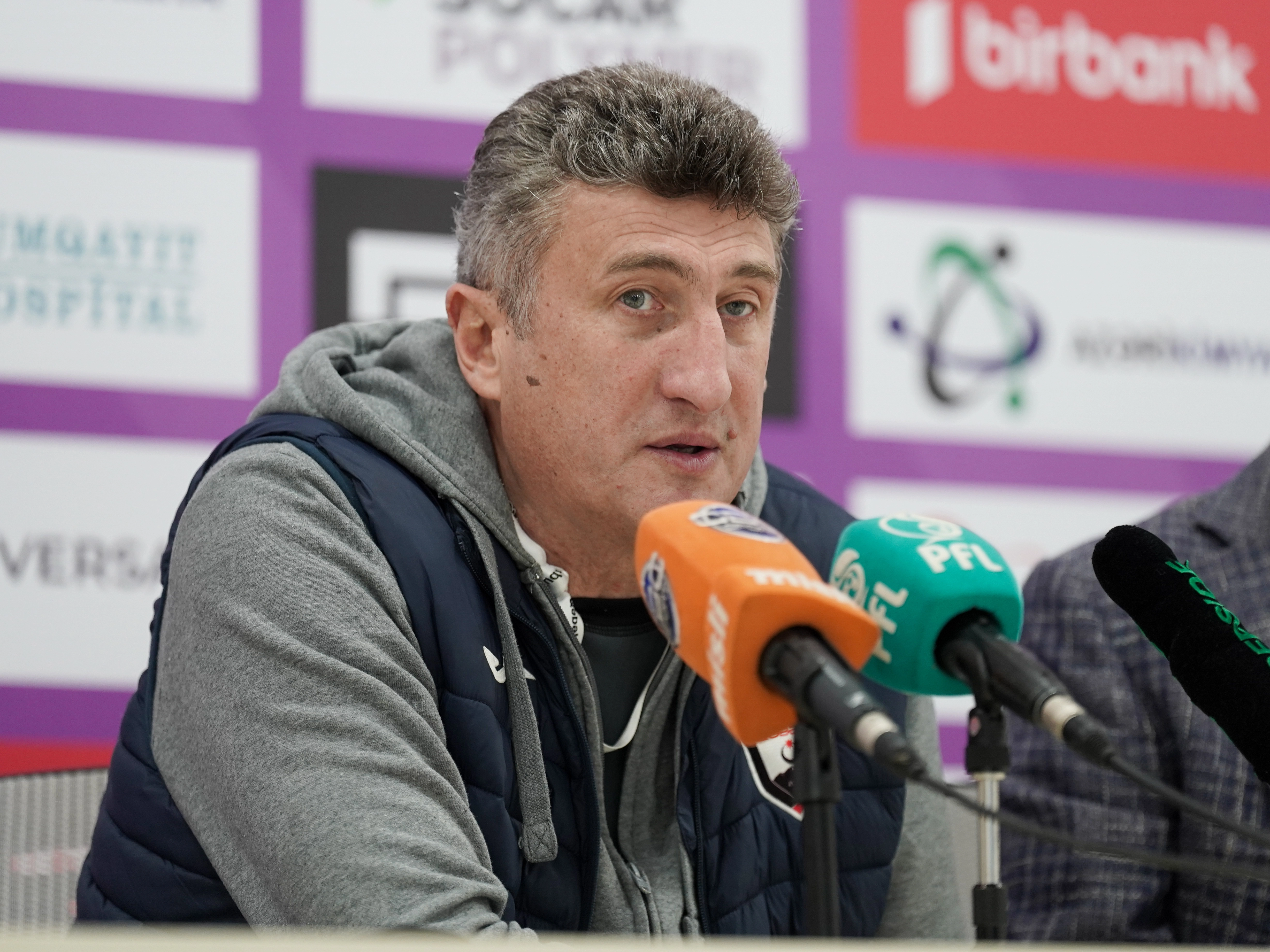 «Поздравляю всех с праздником. Мы пропускаем очень глупые голы. Если вспомнить игру с «Нефтчи», то в той игре в штрафной площадке у нас было 4 игрока, а у них 1. Но мы пропустили очень легкий гол. Я понимаю и болельщиков. Конечно, за результат отвечает главный тренер. Я не боюсь, я готов отвечать. Мы не проигрываем сопернику во всех компонентах. Я думаю, что у игроков проблема с концентрацией. Мы постараемся лучше подготовиться в дальнейшем. Мы сделаем все возможное, чтобы остаться в лиге».