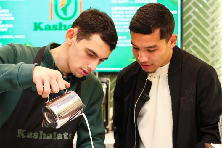 Futbolcular kafede çalışan gençlerle keyifli vakit geçirdi, çeşitli oyunlar oynadı ve onların iş faaliyetlerini yakından tanıdı.